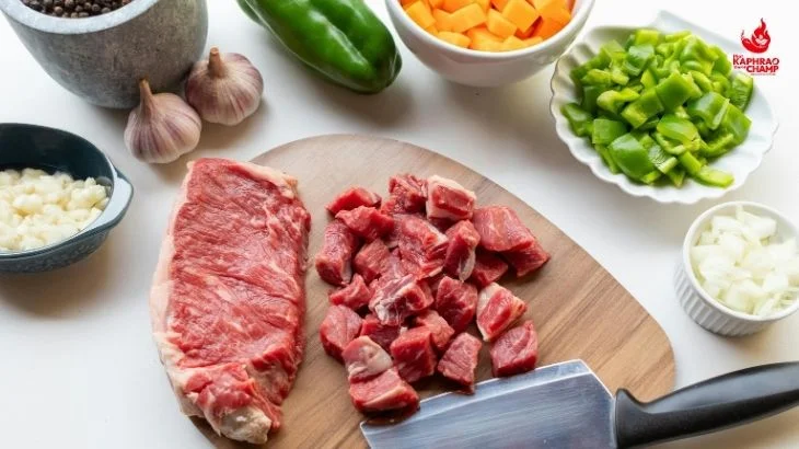 เหตุผลที่เนื้อโคขุนดรายเอจถูกนำมาผัดกะเพรา เพราะเนื้อประเภทนี้สามารถทนความร้อนจากการผัดไฟแรงได้ดีโดยไม่แข็งกระด้าง อีกทั้งยังดูดซึมซอส เครื่องปรุง และกลิ่นหอมของพริกกระเทียมกับใบกะเพราได้อย่างลงตัว เมื่อผัดรวมกันแล้วจะได้รสชาติที่ทั้งเผ็ดร้อน หอมฉุน และเข้มข้นในคำเดียว เกิดเป็นกะเพราที่ไม่เพียงแค่เผ็ดอร่อย แต่ยังมี “ความลึกของรสเนื้อ” เพิ่มเข้ามาอย่างชัดเจน